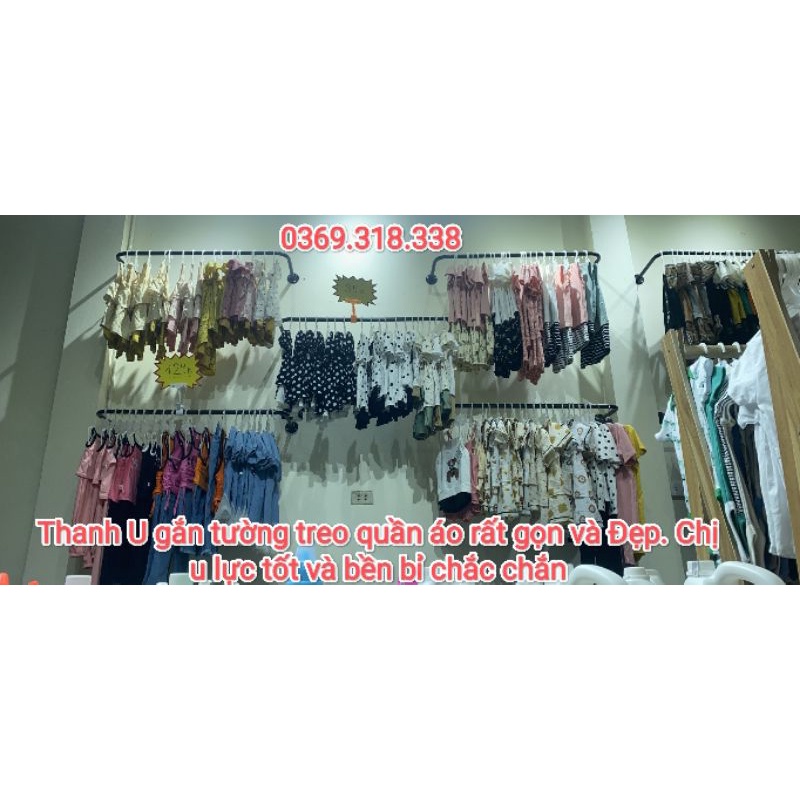 Thanh U treo quần áo dài 60cm - 80cm - 1m - 1,2m -1,5m( tặng vít và tắc kê nhựa)