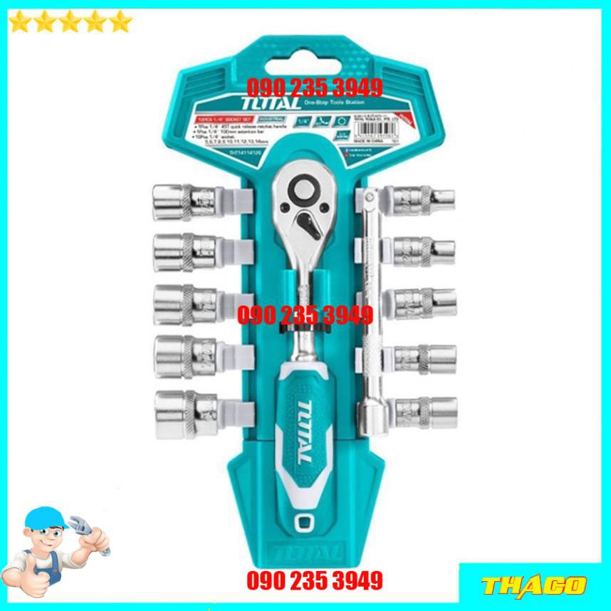 Bộ đầu tuýp tiếp 1/2 1/4 inch kèm cần siết 2 chiều Total Ingco 12 chi tiết thép Cr-V mạ Chrome chuyên dùng 1234