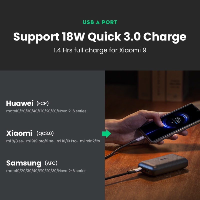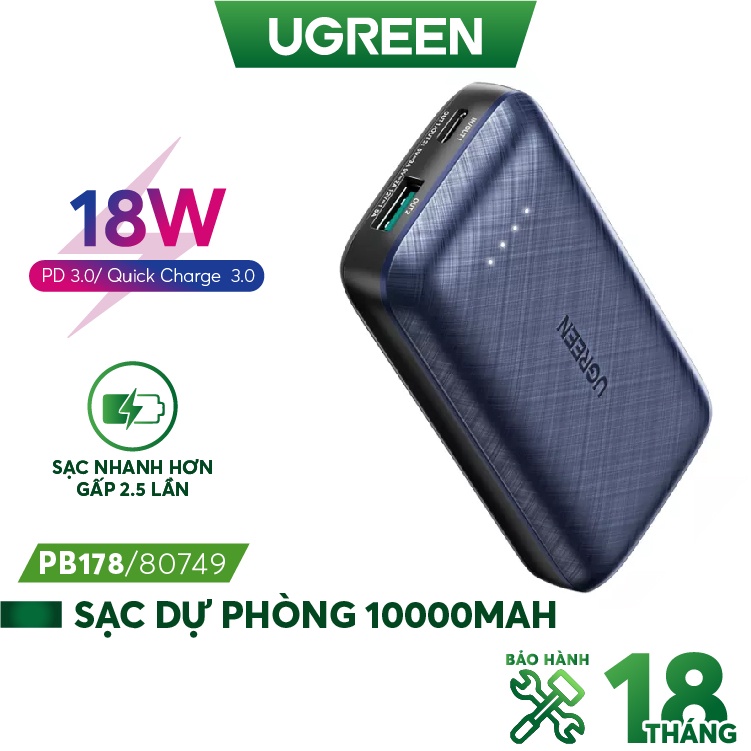Điện Thoại & Phụ Kiện > Phụ kiện > Sạc dự phòng & Pin > Sạc dự phòng || [UGRE90K giảm 90K] Pin sạc dự phòng mini 10000mAh 2 cổng UGREEN 80749 - PD + QC 3.0 18W Sạc nhanh iPhone 12 50% pin 30'Còn hàng
