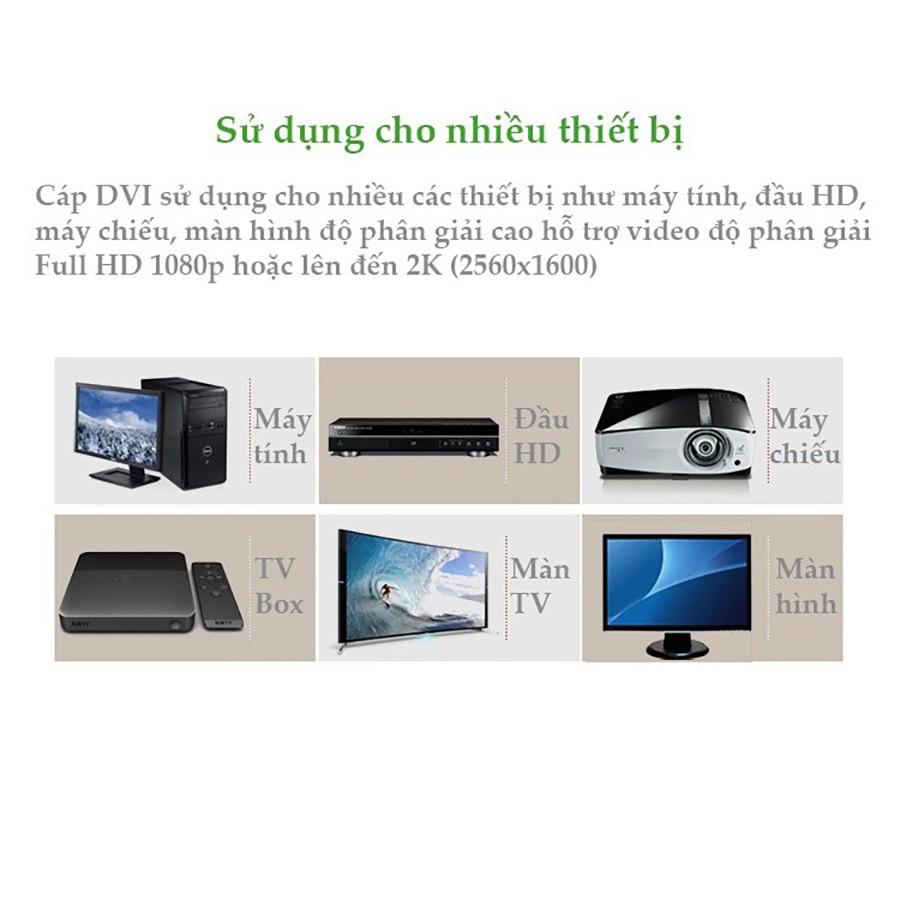 ◇ Cáp sử dụng để kết nối máy tính, laptop hoặc thiết bị Bluray, phát DVD sang thiết bị hiển thị hỗ trợ cổng DVI.