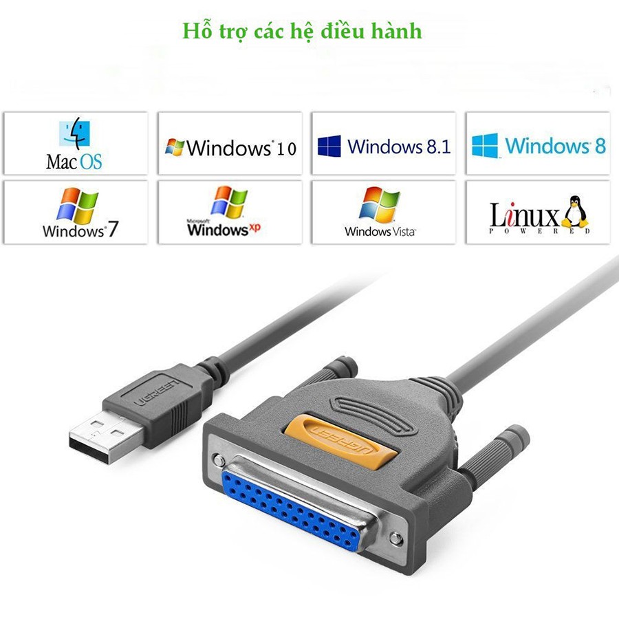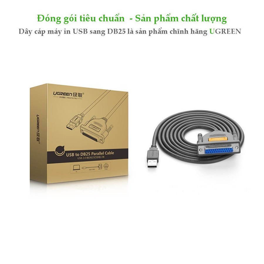 Cáp máy in USB to DB25 Parallel IEEE 1284 Ugreen 20224 là thiết bị lý tưởng để kết nối máy tính được trang bị cổng USB tới máy in phun, máy in laser, máy quét, máy tính tiền có cổng Parallel DB25