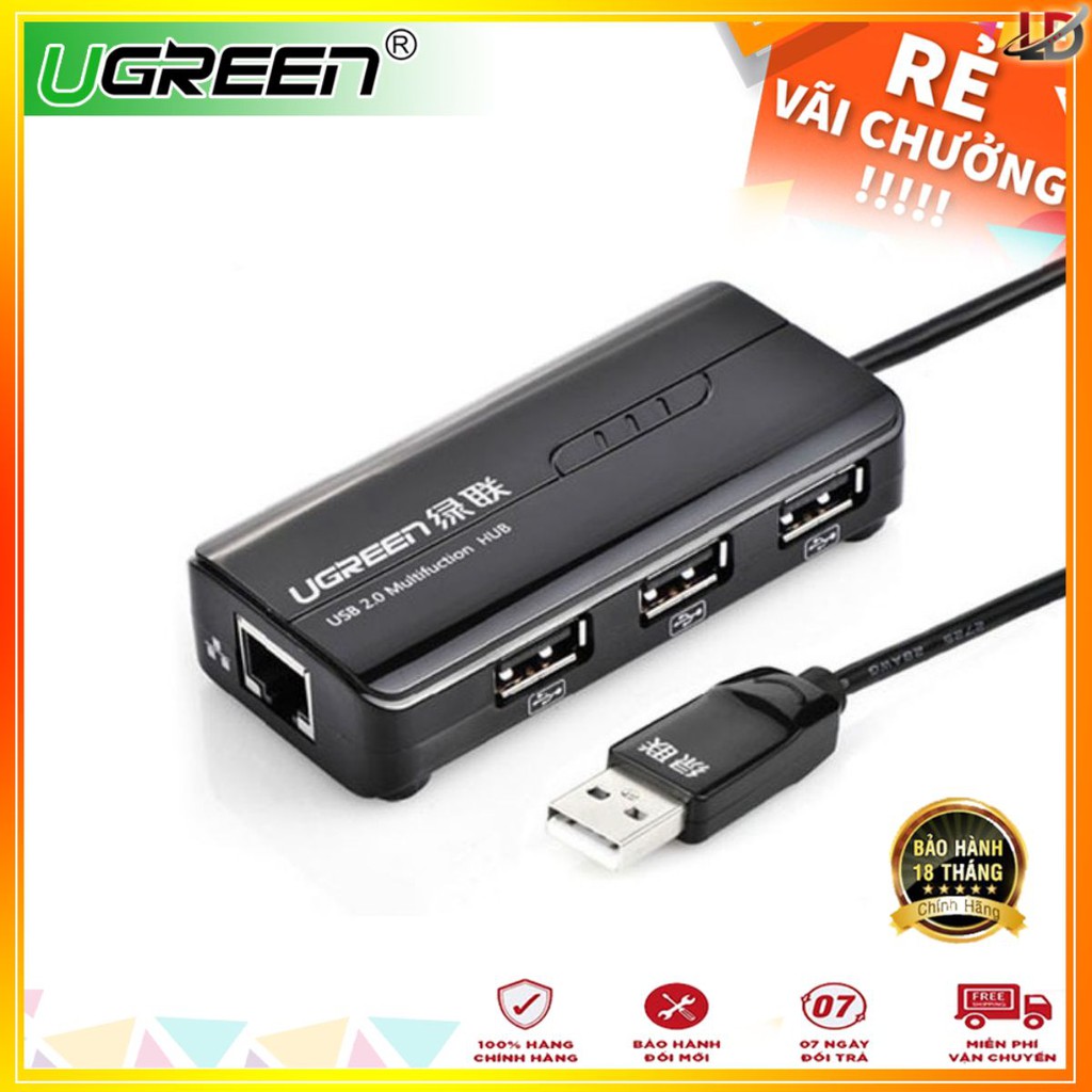 Ugreen 20264 - HUB 3 cổng USB 2.0 kèm cổng mạng LAN tốc độ 10/100Mbps - Phukienleduy