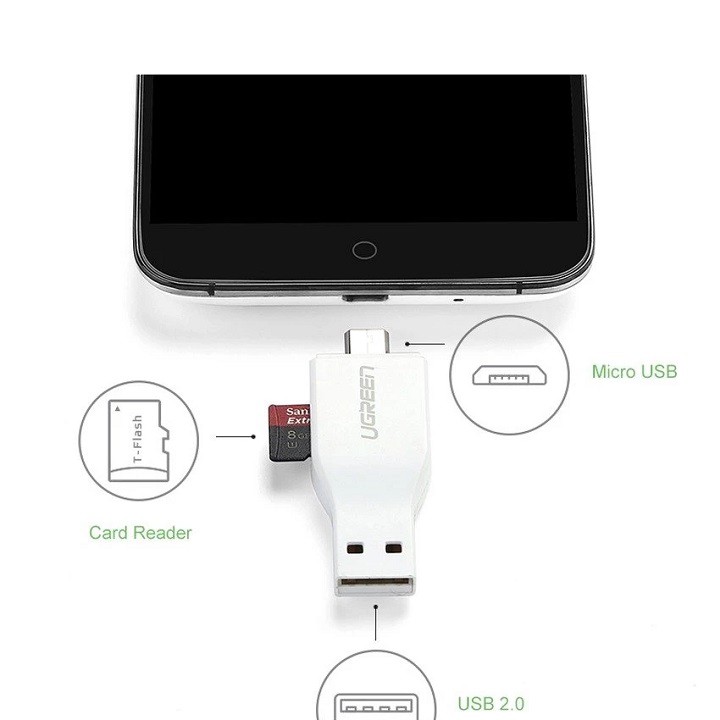 Máy tính & Laptop > Phụ Kiện Máy Tính > Bộ chia cổng USB & Đọc thẻ nhớ || UGREEN - 30358 Universal USB 2.0 OTG Card Reader for Micro SD/TFFlash Memory Card - IntlCòn hàng