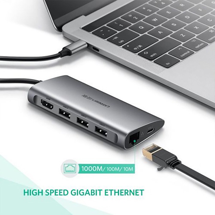 Ugreen 50538 - Cáp Chuyển USB Type C Sang 3 cổng USB 3.0, HDMI,RJ45, SD, TF cao cấp