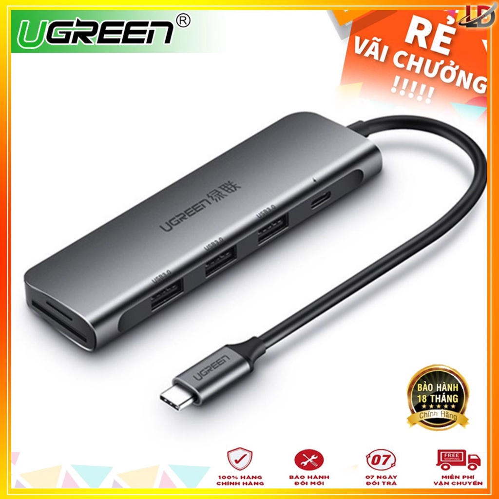 Ugreen 50598 - Cáp chuyển USB Type C ra 3 cổng USB 3.0 + SD/TF + PD chính hãng - Phukienleduy