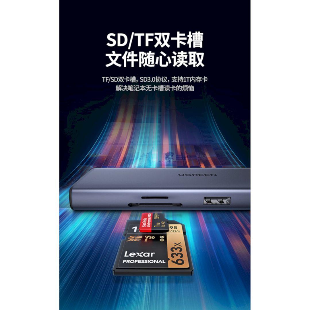 Giới thiệu Ugreen 90119 4K 60Hz 60w PD Type C sang 2×USB 3.0 + 1×USB 2.0 + 2×HDMI + gigabits LAN RJ45 1000M + SD + TF Bộ chuyển đổi Ugreen CM490 - Hàng Chính Hãng