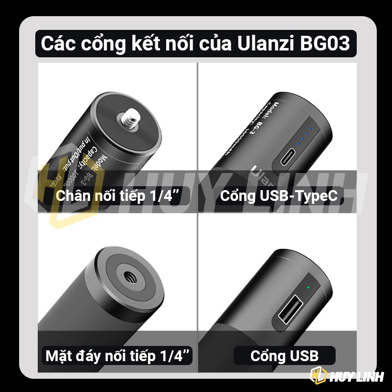 Cameras & Flycam > Phụ kiện máy ảnh > Bộ sạc pin || Ulanzi BG3 Pin 10,000 Mah - Tay cầm kiêm pin sạc dự phòng cho Spotcam, điện thoại, máy ảnhCòn hàng