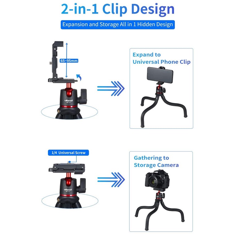 Giới thiệu ULANZI MT-11 - HÀNG CHÍNH HÃNG - Chân Tripod bạch tuộc dành cho Máy ảnh và Điện thoại (Tích hợp ngàm kẹp cho điện thoại)