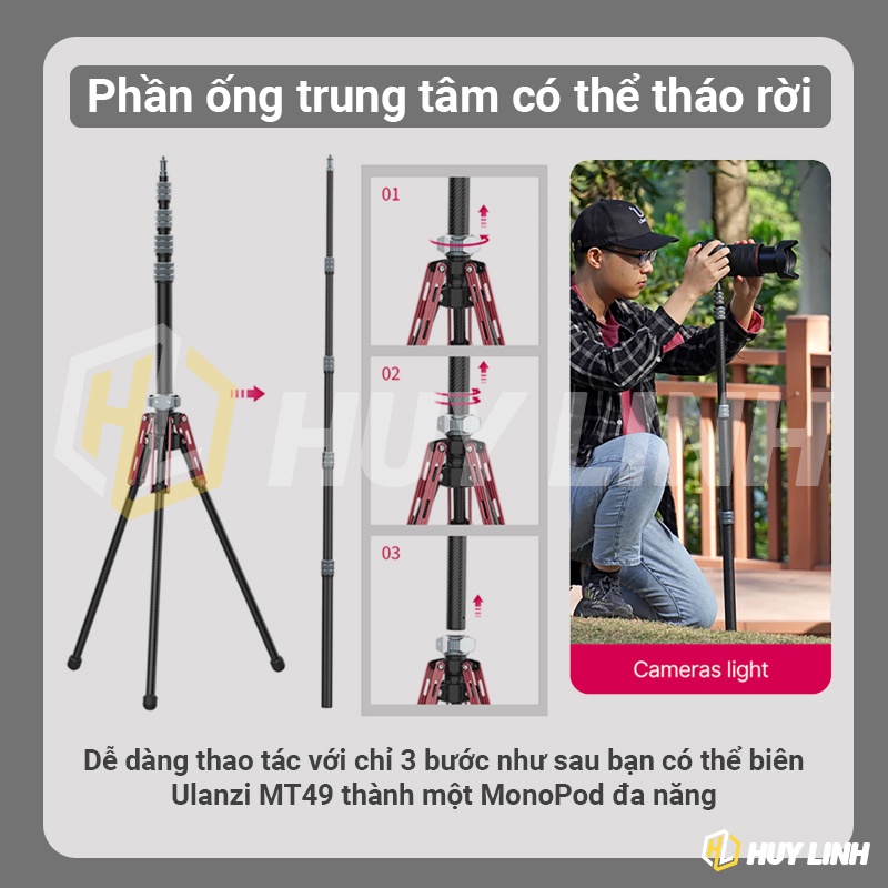Giới thiệu Ulanzi MT49 Tripod chuyên nghiệp Full Carbon - Chiều cao tối đa 2M gắn Đèn, Camera