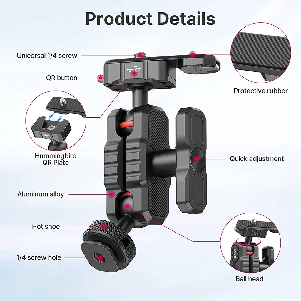TÍNH NĂNG:◾ Double Ball Head Magic Arm: Áp dụng thiết kế 2 đầu bi, nghiêng và xoay 360 °, chụp ở mọi góc độ để đáp ứng các nhu cầu cảnh khác nhau