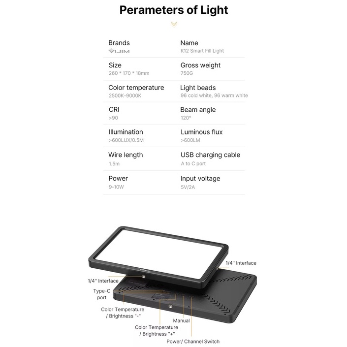 Giới thiệu ULANZI VIJIM K12 (2500K-9000K) - HÀNG CHÍNH HÃNG - Bộ đèn LED đi kèm Giá đỡ & Điều khiển từ xa