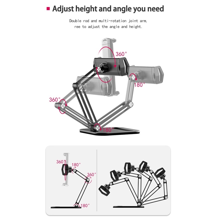 TÍNH NĂNG◾ Giá đỡ để bàn phù hợp với điện thoại và máy tính bảng có kích thước từ 13 - 23cm, trọng tải tối đa 1Kg