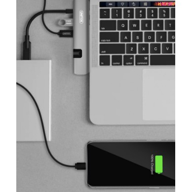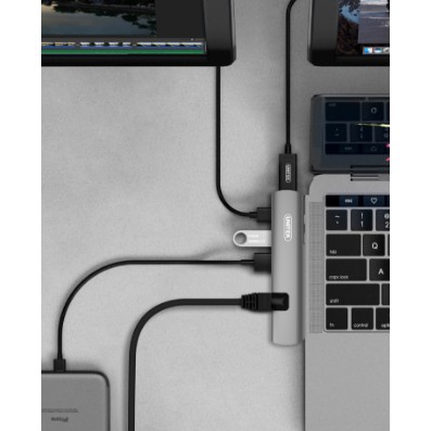 Ultra Slim Hub để mở rộng đa cổng D008a Type C -> USB 3.0 + HDMI + LAN unitek D008AMàu sắc: Xám