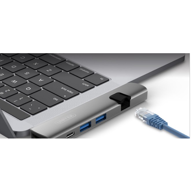 Máy tính & Laptop > Thiết Bị Lưu Trữ > USB & OTG || [Mã 273ELHA100K0 hoàn 7% đơn 500K] Ultra Slim Hub để mở rộng đa cổng D008a Type C -> USB 3.0 + HDMI + LAN unitek D008ACòn hàng