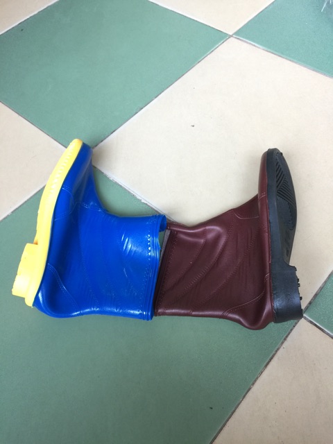 Ủng ngắn đi mưa đi lao động làm vườn 2 màu nâu và xanh