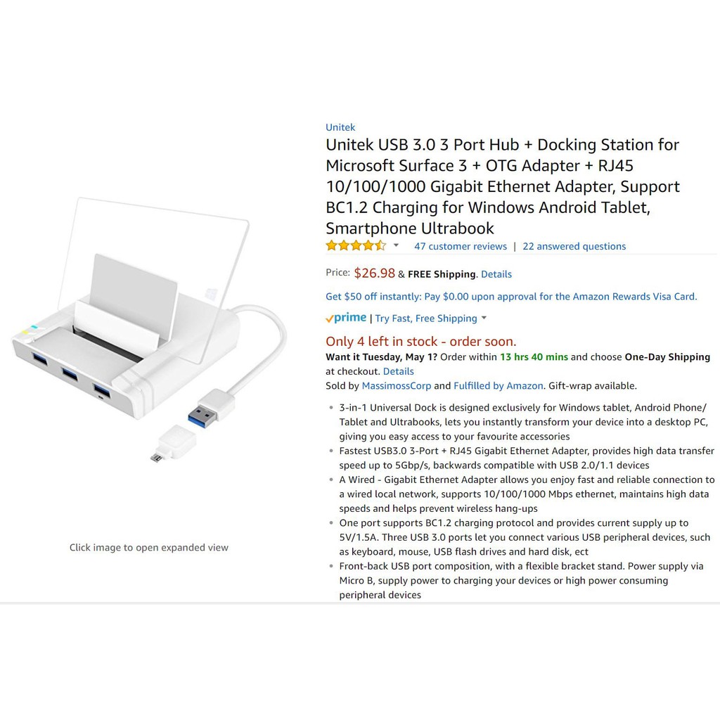 Dock đa chức năng UNITEK Y-3081A đươc sử dụng cho Microsoft surface, microsoft surface pro 3 - 4, ngoài ra thiết bị này có thể sử dụng cho điện thoại - máy tính bảng Android hoặc Ultrabook thông qua đầu chuyển OTG chuyển từ micro USB sang USB (đi kèm sẵn trong bộ dock) cho phép bạn biến máy tính bảng thành desktop PC để có thể sử dụng dễ dàng với chuột, máy tính, internet có dây và các thiết bị ngoại vi khác.