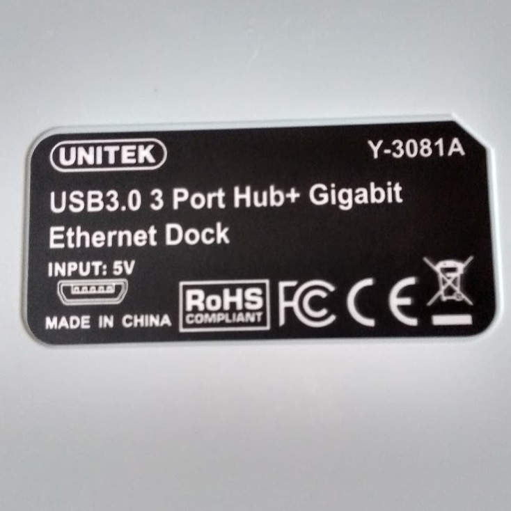 1 x USB3.0 3-Port Hub + Gigabit Ethernet Dock