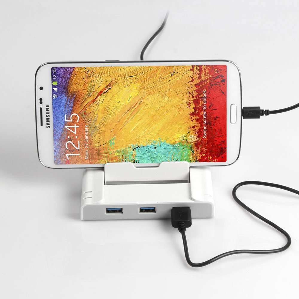 Bộ dock còn trang bị thêm 1 cổng micro USB để lấy nguồn phụ từ bộ sạc điện thoại nhằm cung cấp nguồn điện đến cổng USB của Hub tối đa 5V/1.5A để sạc cho thiết bị yêu cầu dòng điện cao. Thông thường nếu không sử dụng dock để sạc thiết bị ngoại vi thì không cần chức năng này.