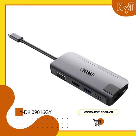Unitek Y-DK 09016 GY - Bộ Chia/ Hub Type-C Ra HDMI / VGA / LAN Cao Cấp