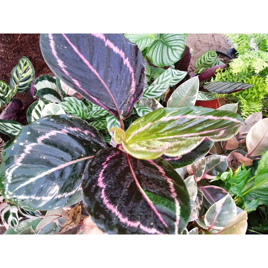 Là loại đuôi công lá bầu - Bản lá to và cứng, cuống lá mập và vững để giữ lá được thẳng.Mỗi lá có viền ren màu hồng chạy vòng cách mép lá tầm 1-2cm trông rất lạ mắt