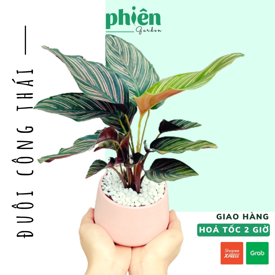Nhà cửa & Đời sống > Làm vườn > Cây cảnh || Cây Đuôi Công Thái Calathea ornata để bàn kèm chậu gốm tráng menCòn hàng