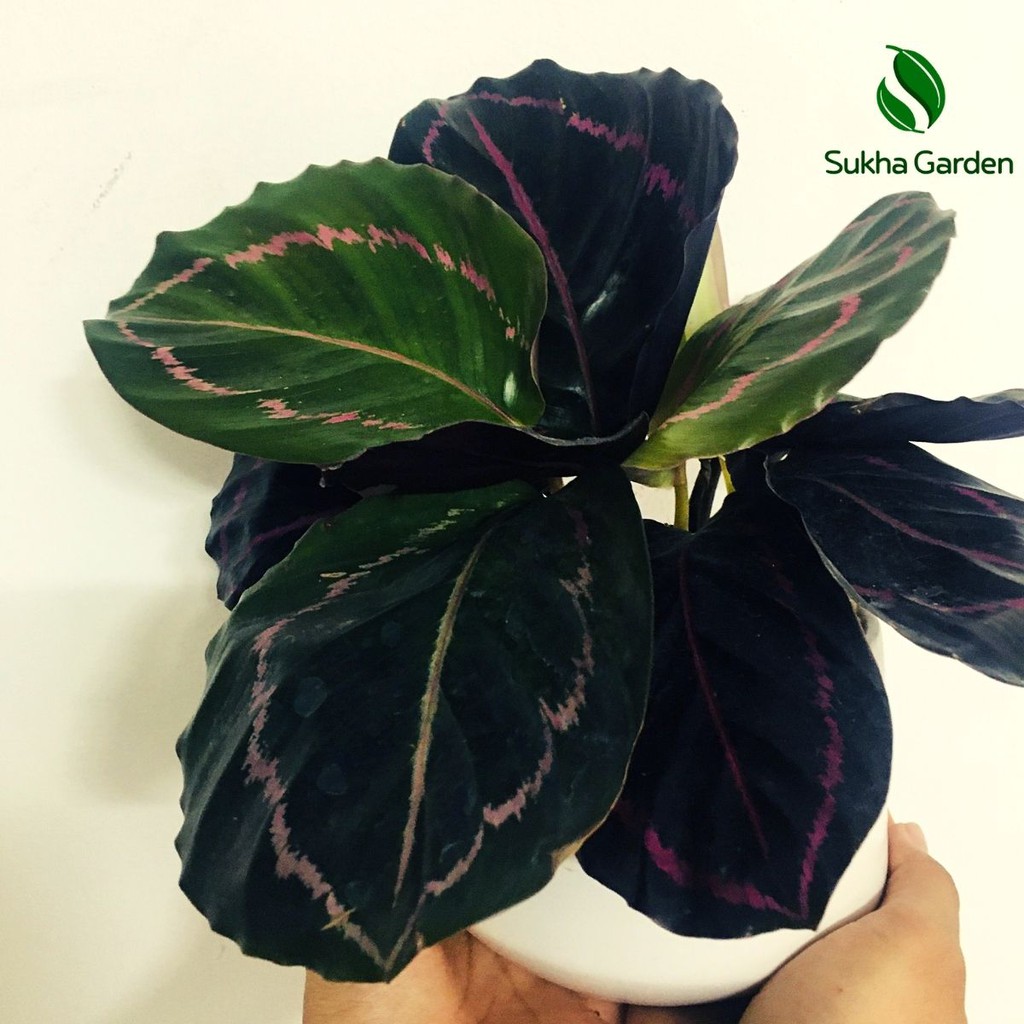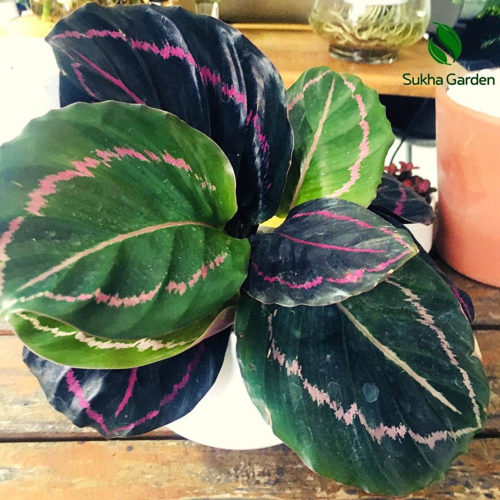 Nhà cửa & Đời sống > Làm vườn > Cây cảnh || Cây Đuôi Công Tím Calathea Medallion để bàn kèm chậu gốm tráng menCòn hàng