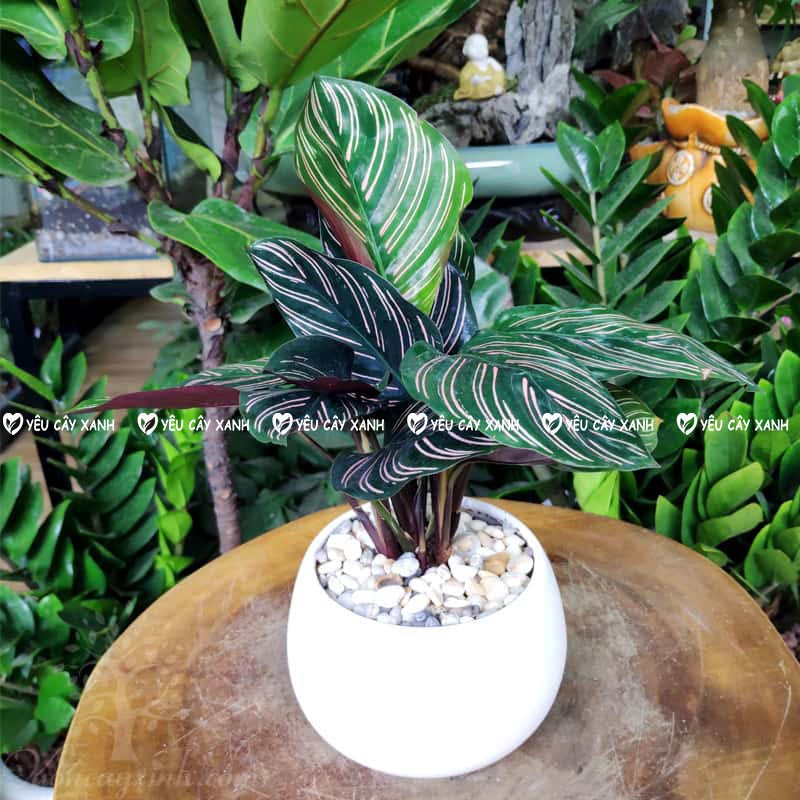 Nhà cửa & Đời sống > Làm vườn > Cây cảnh || Cây Đuôi Công Tím để bàn - Calathea MedallionCòn hàng