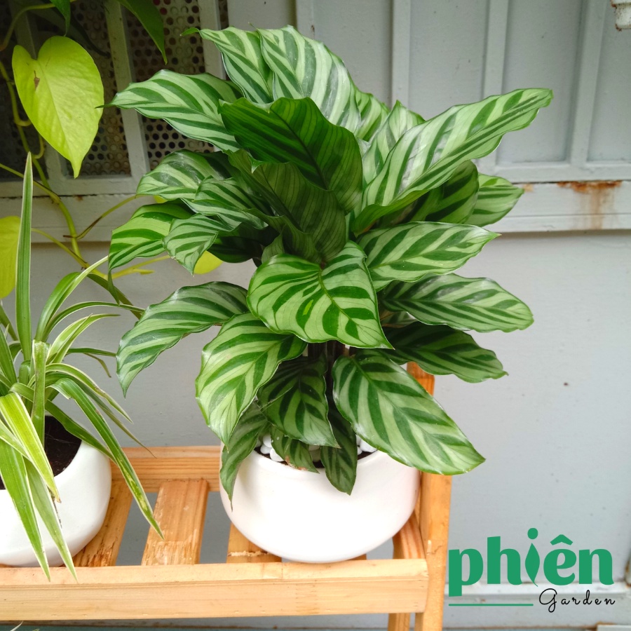 Nhà cửa & Đời sống > Làm vườn > Cây cảnh || Cây Đuôi Công Xanh Sọc Xanh Calathea Bella để bàn kèm chậu gốm tráng menCòn hàng