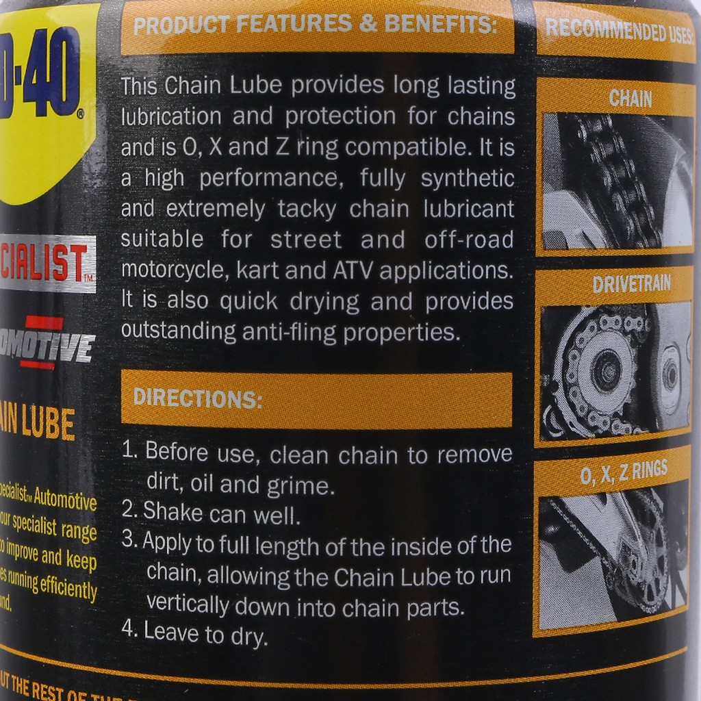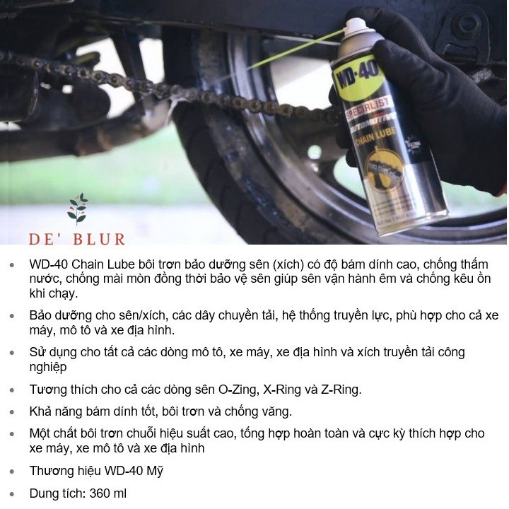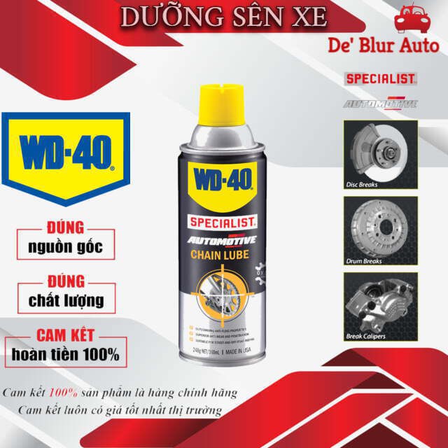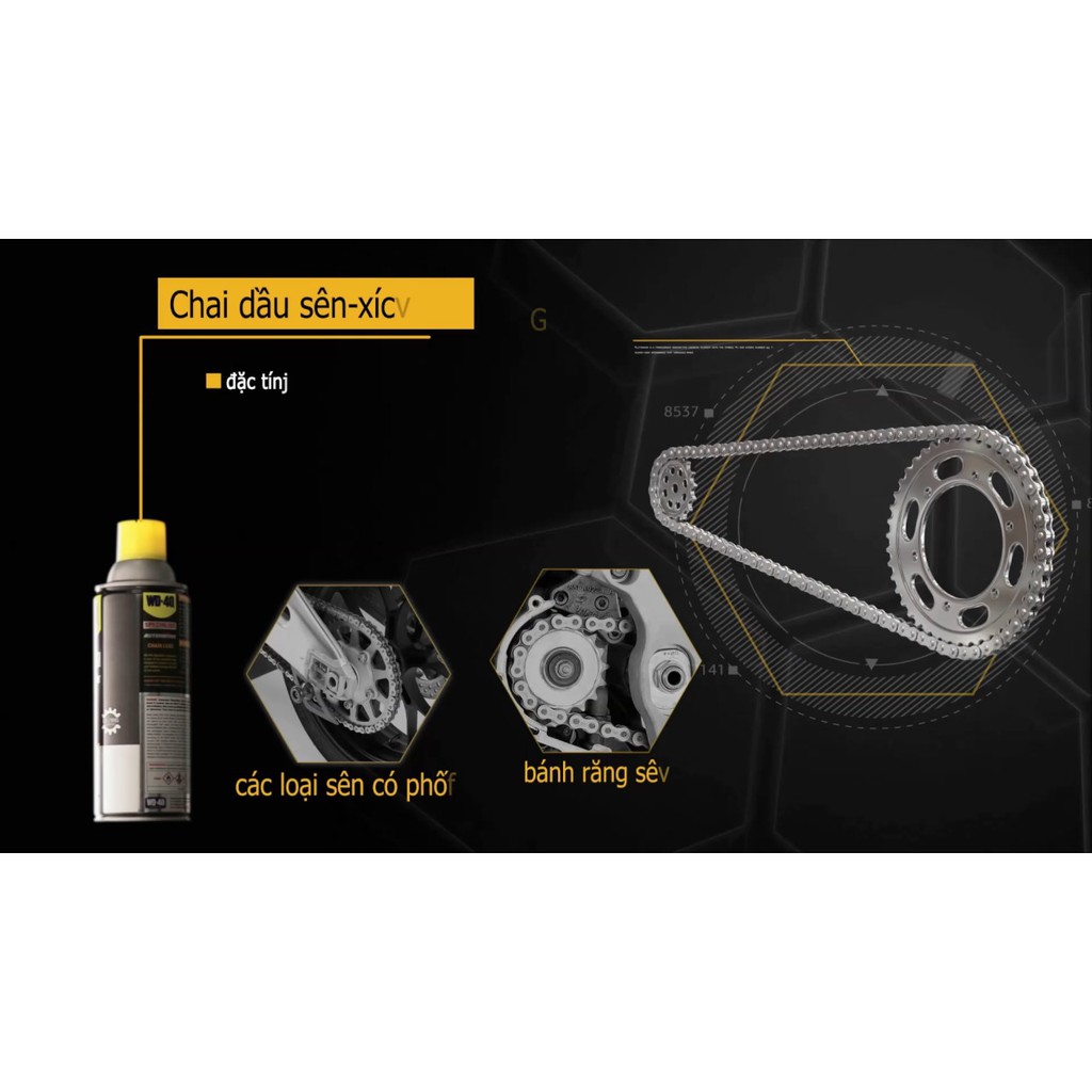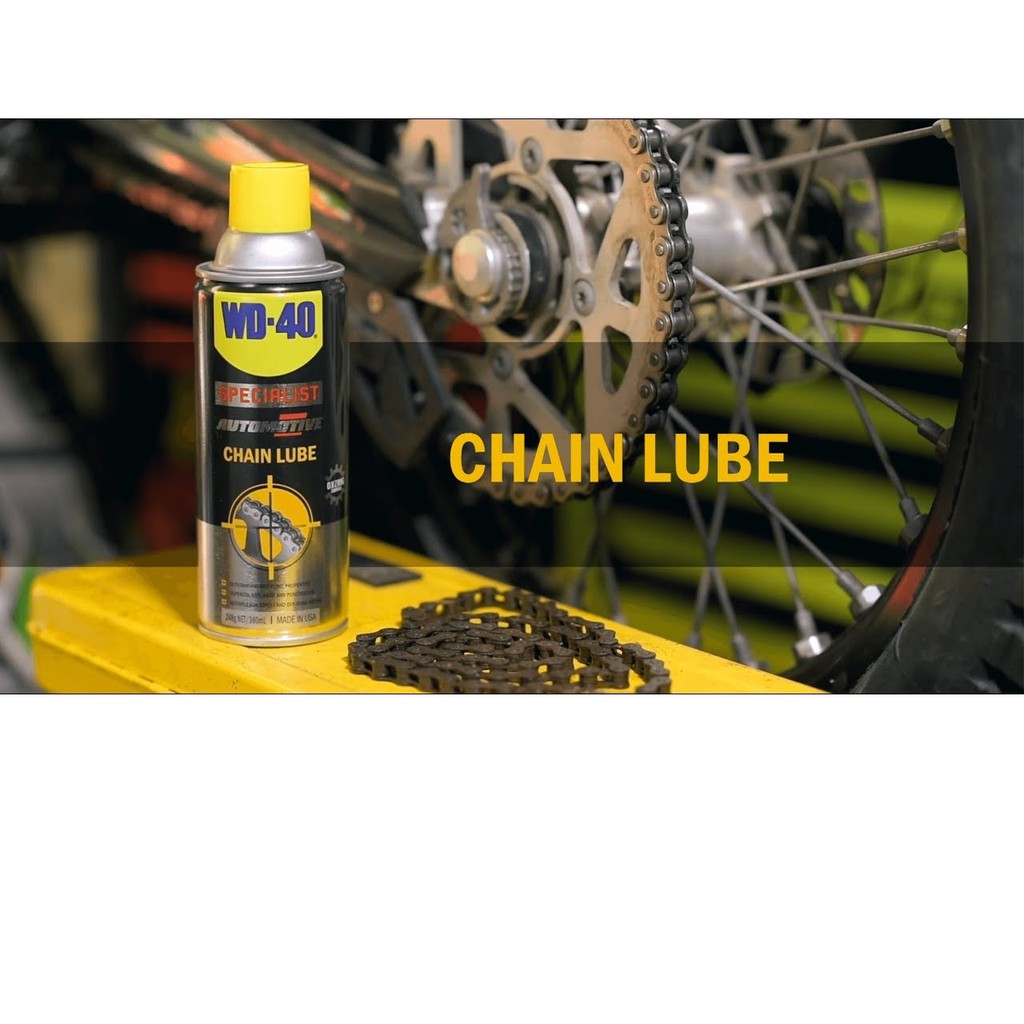 - Chai Xịt Dầu Sên - Xích WD-40 Specialist Chain Lube là dung dịch có khả năng bôi trơn, bảo dưỡng và bảo vệ sên khỏi rỉ sét.