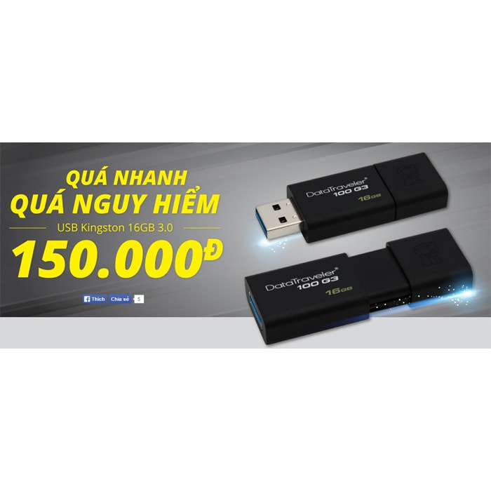 Máy tính & Laptop > Thiết Bị Lưu Trữ > USB & OTG || USB 16GB Kingston USB 3.0 Data Traveler DT100G3 (Black) - Hãng Phân Phối Chính ThứcCòn hàng