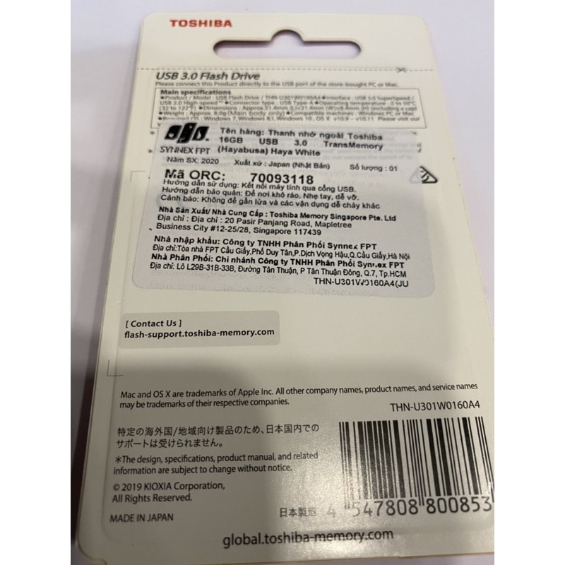Usb 16GB Toshiba chính hãng FPT phân phối.