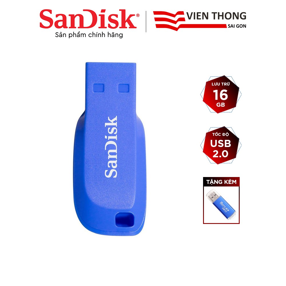 Máy tính & Laptop > Thiết Bị Lưu Trữ > USB & OTG || USB 2.0 SanDisk CZ50C 16GB Cruze Blade (Blue) tặng đầu đọc thẻ nhớCòn hàng
