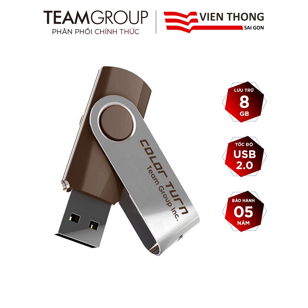 Máy tính & Laptop > Thiết Bị Lưu Trữ > USB & OTG || USB 2.0 Team Group E902 8GB nắp xoay 360 (Nâu) - Hãng phân phối chính thứcCòn hàng