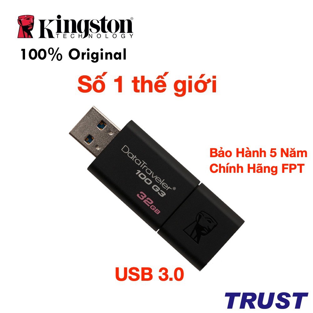 USB 3.0 32GB Kingston DataTraveler 100 -DT100G3/32GB- Bảo Hành 5 Năm- Hàng Chính Hãng