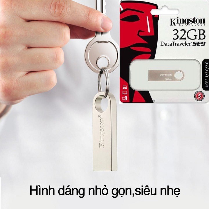 - Thiết kế thời trang Dòng sản phẩm USB 3.0 Kingston DataTraverler SE9 có thiết kế nhỏ gọn rất thích hợp cho những người hay di chuyển.