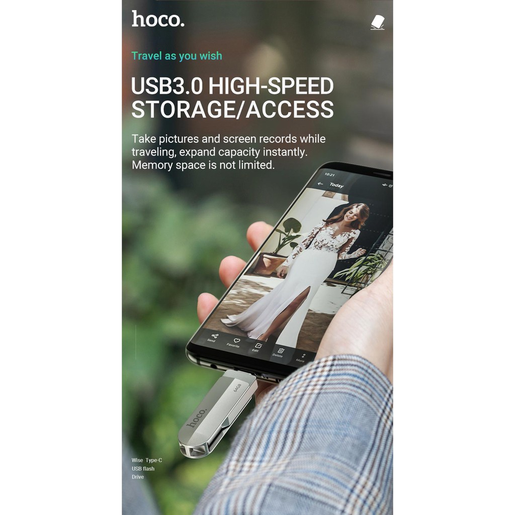 Giới thiệu USB 3.0 OTG Hoco UD10 32GB / 64GB cổng TypeC và USB 3.0 - Vỏ kim loại cực đẹp (Bạc) - Hãng phân phối