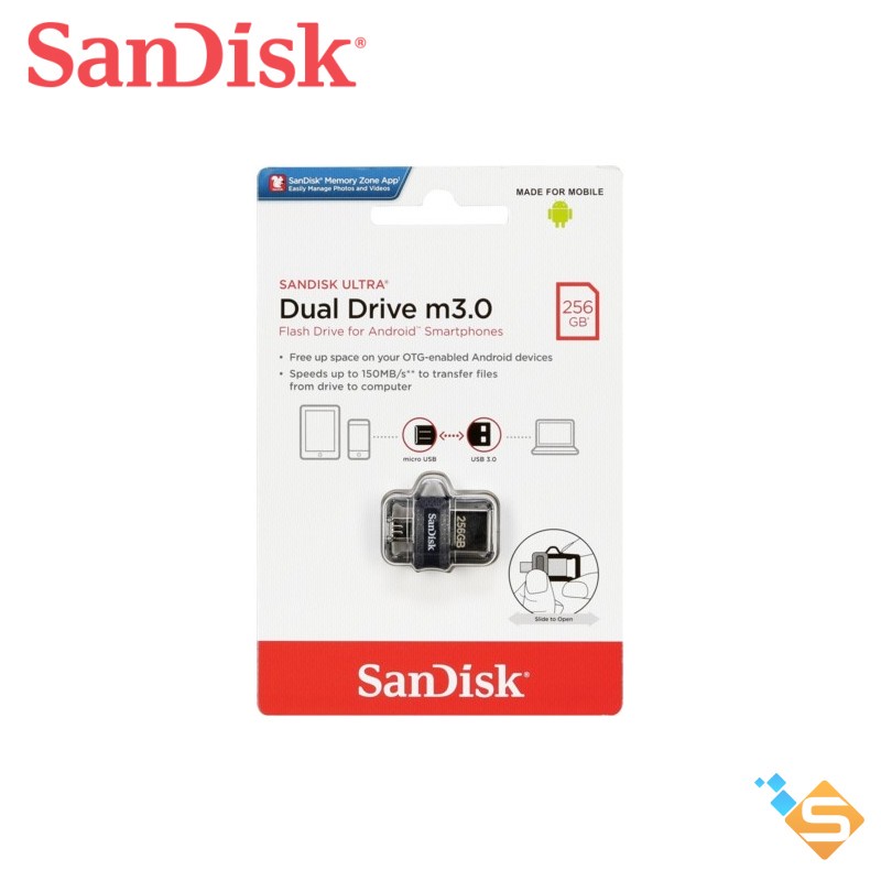 USB OTG 3.0 SanDisk Ultra Dual Drive M3.0 tương thích với điện thoại thông minh Android và máy tính bảng có tính năng OTG (On-the-Go). Vui lòng tham khảo danh sách các thiết bị tương thích tại đây