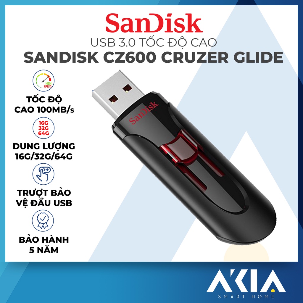 Máy tính & Laptop > Thiết Bị Lưu Trữ > USB & OTG || USB 3.0 Sandisk Cruzer Glide CZ600 tốc độ cao, tích hợp sẵn phần mềm bảo mật SecureAccess, Bảo Hành 5 năm chính hãngCòn hàng
