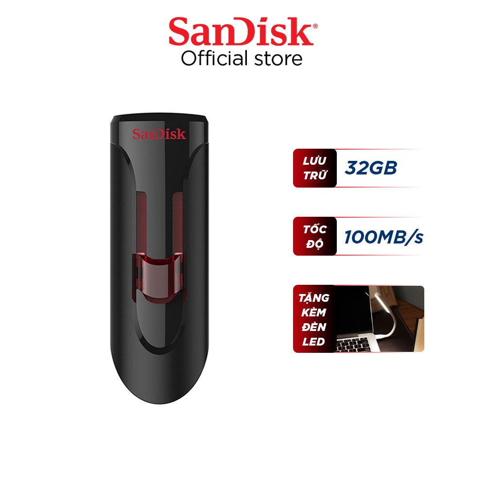 USB 3.0 SanDisk CZ600 32GB Cruzer Glide tốc độ cao upto 100MB/s tặng đèn LED USB
