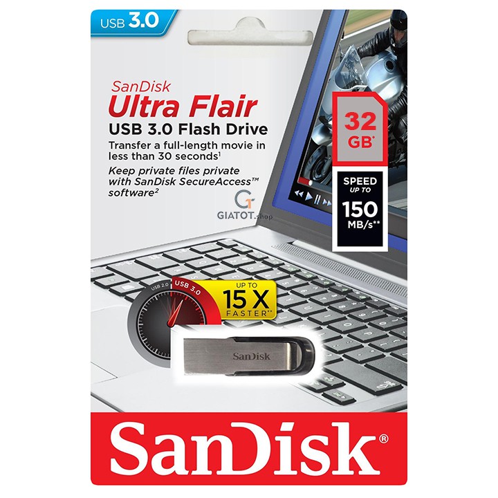 USB 3.0 SanDisk Ultra Flair CZ73 32GBTừ lâu SanDisk đã là nhà sản xuất tiên phong về thiết bị lưu trữ rời và USB.