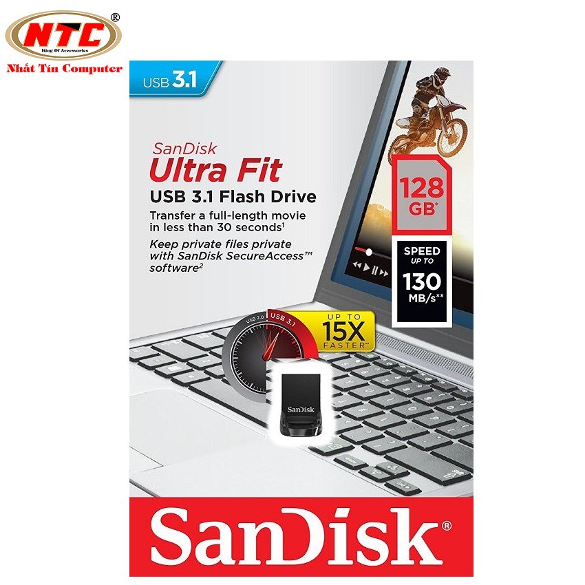 Máy tính & Laptop > Thiết Bị Lưu Trữ > USB & OTG || [Mã 253ELSALE hoàn 7% đơn 300K] USB 3.1 SanDisk CZ430 Ultra Fit 128GB 130MB/sCòn hàng