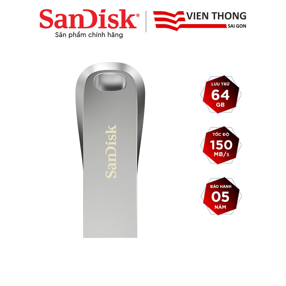 Máy tính & Laptop > Thiết Bị Lưu Trữ > USB & OTG || USB 3.1 SanDisk CZ74 64GB Ultra Luxe upto 150MB/sCòn hàng