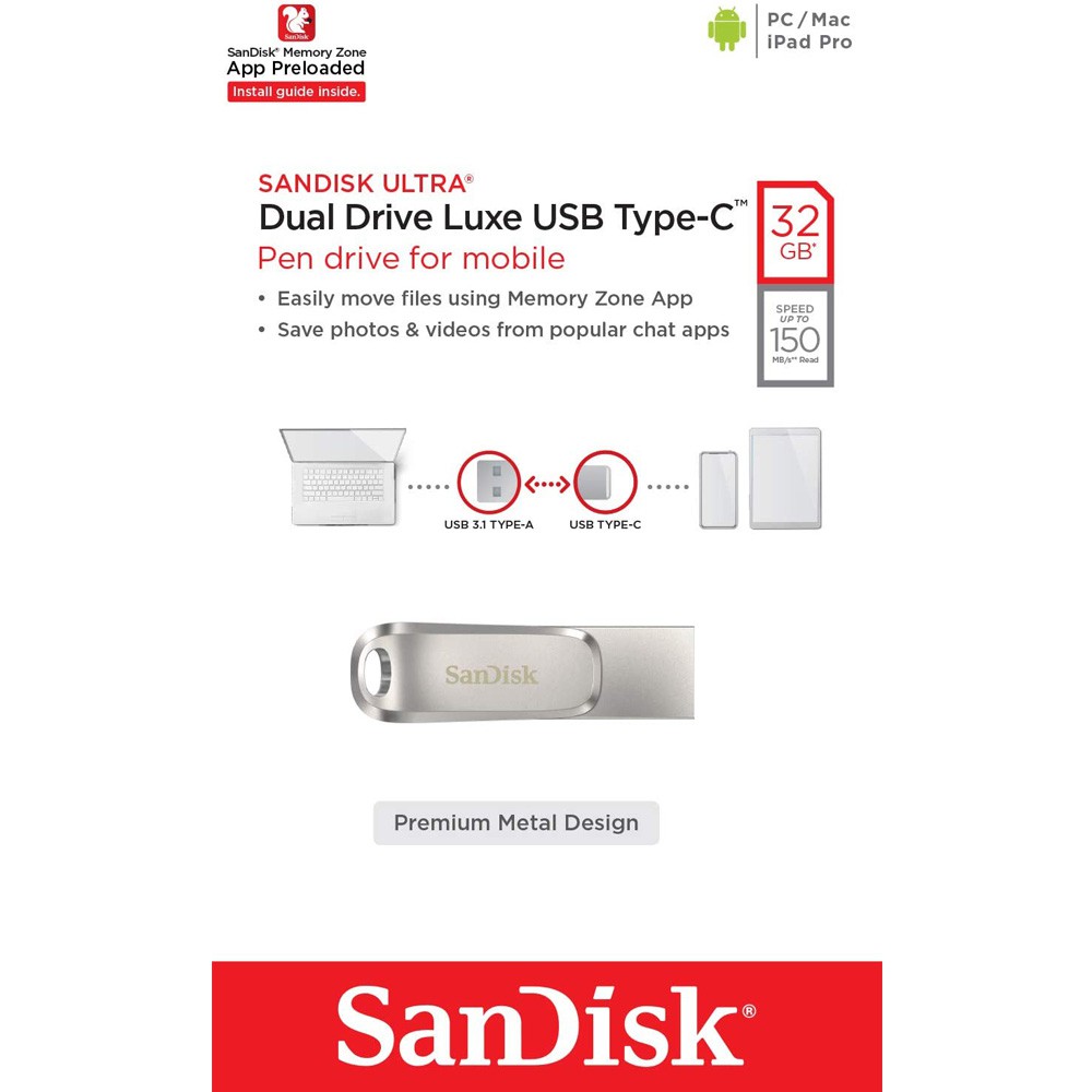 USB 3.1 Sandisk Ultra Dual Drive Luxe OTG Type-C DDC4 32GB OTG SDDDC4-032G-G46