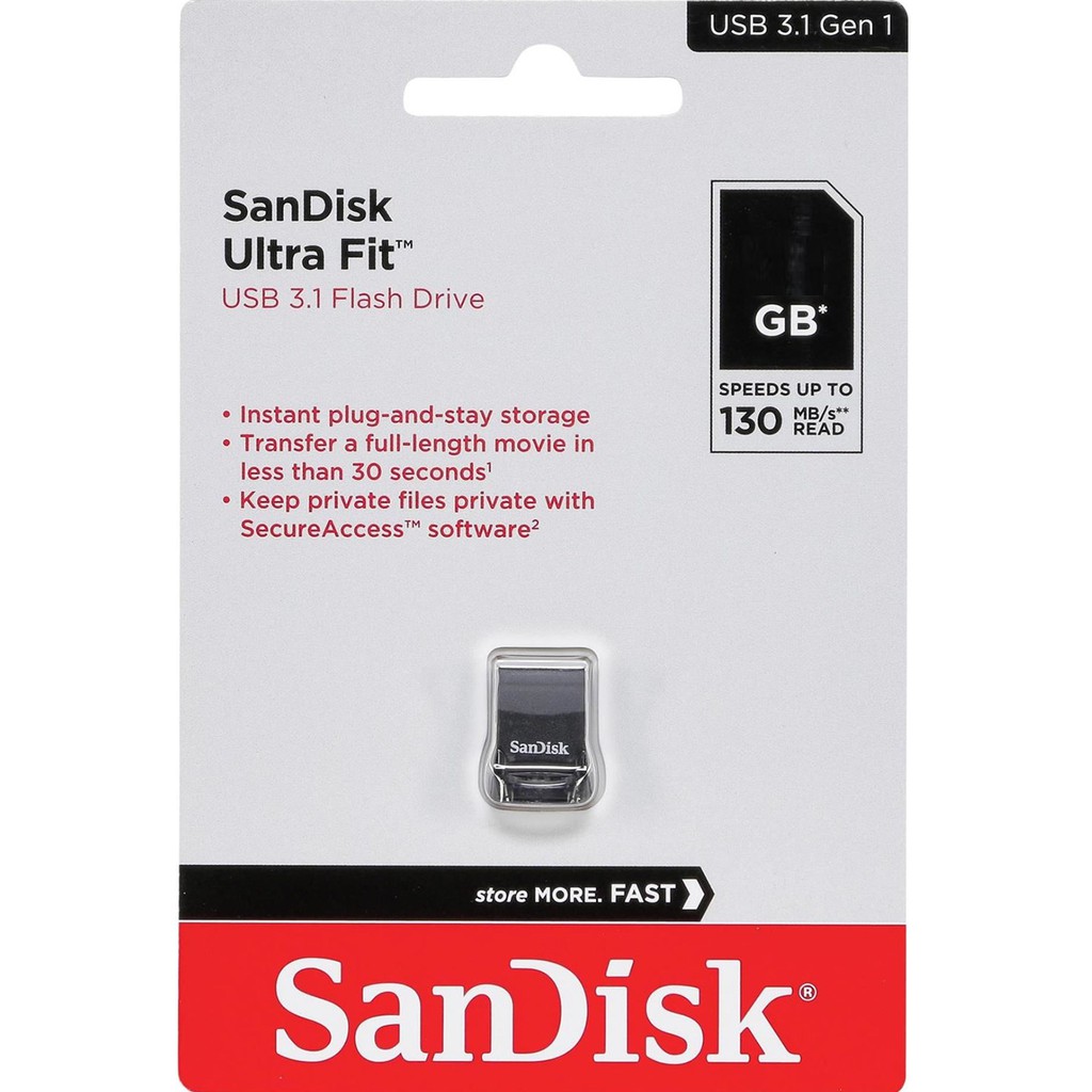 Máy tính & Laptop > Thiết Bị Lưu Trữ > USB & OTG || USB 3.1 SanDisk Ultra Fit CZ430 16GB / 32GB / 64GB / 128GB 130MB/s (Đen) - Hàng Chính HãngCòn hàng