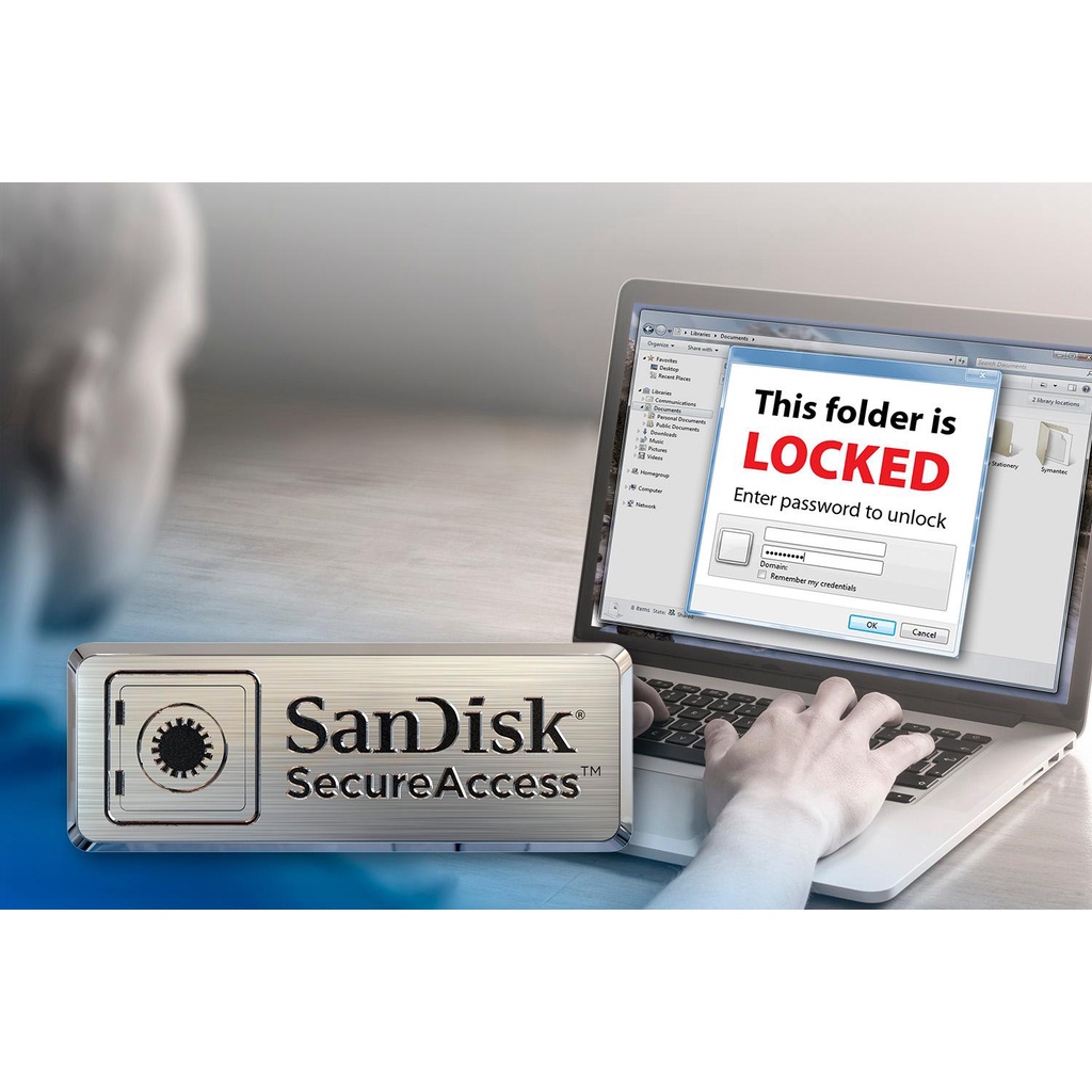 Phần mềm bảo mật SanDisk SecureAccess đi kèm sẽ giúp bạn tạo một thư mục riêng trên ổ đĩa của bạn và mã hóa nó bằng thuật toán AES 128-bit kèm theo mật khẩu bảo vệ giúp bạn dễ dàng bảo vệ các tệp quan trọng. Chỉ cần chép dữ liệu quan trọng vào thư mục đã được chỉ định, dữ liệu của bạn sẽ được bảo vệ an toàn.