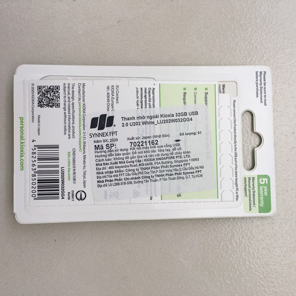 Giới thiệu USB 32gb KIOXIA U202 chuẩn 2.0 (trắng) Japan - FPT phân phối