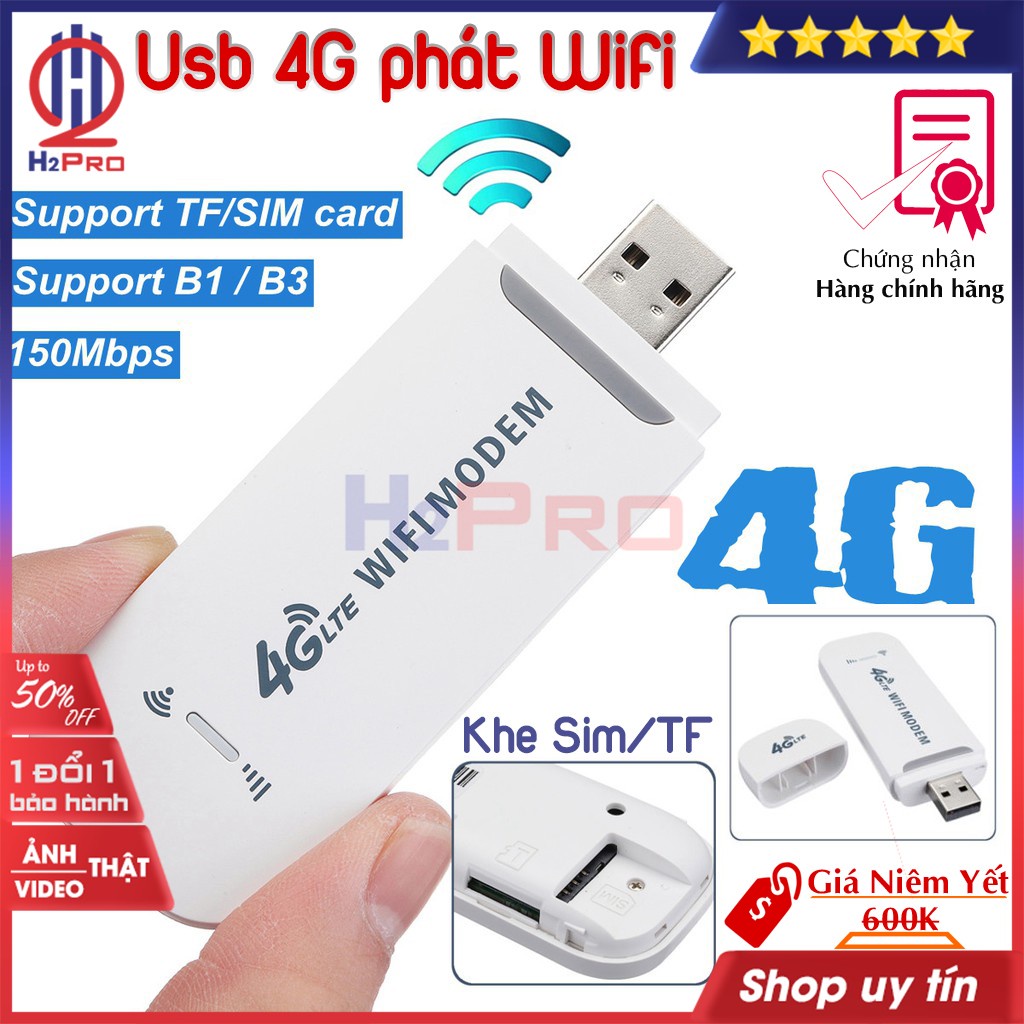 Usb 4g phát Wifi Dongle H2pro tốc độ 150Mbps-10 thiết bị(1 chiếc),usb 4g cho laptop, máy tính, điện thoại cao cấp giá rẻ
