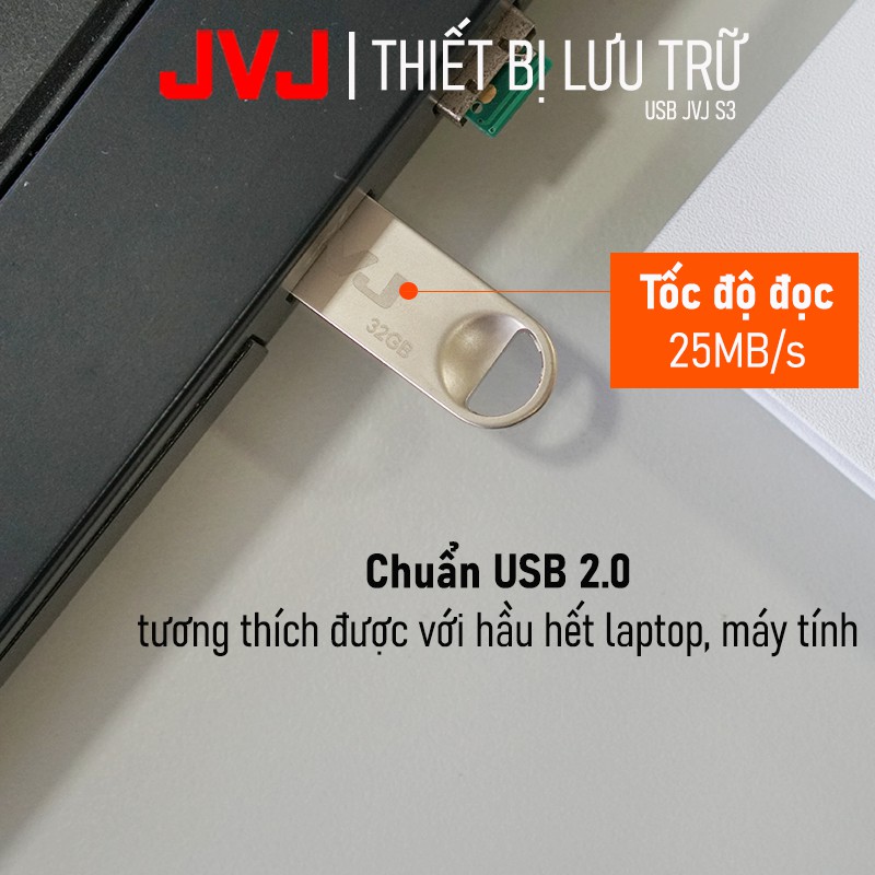 USB 8Gb JVJ S3 siêu nhỏ vỏ kim loại - USB 2.0, tốc độ 25MB/s chống nước, Bảo hành 5 năm chính hãngTính năng nổi bật: