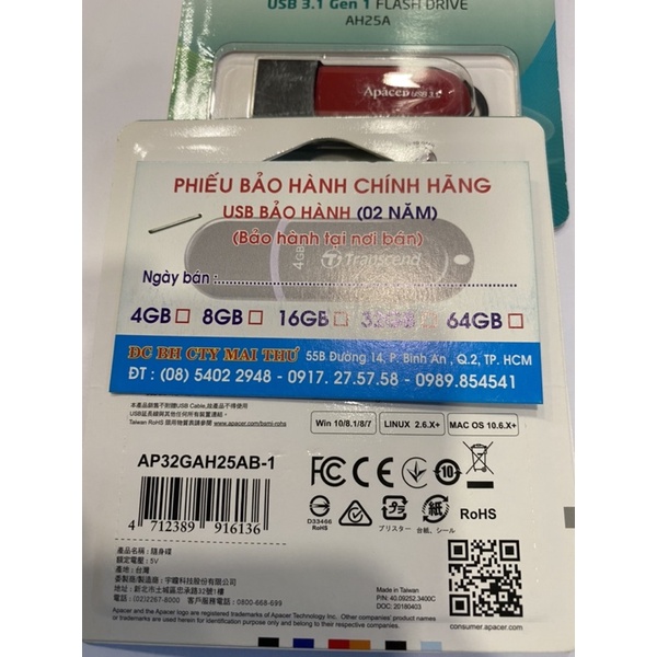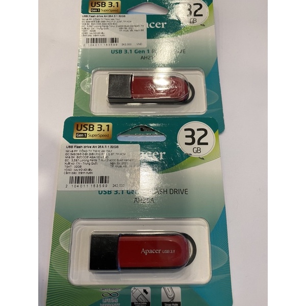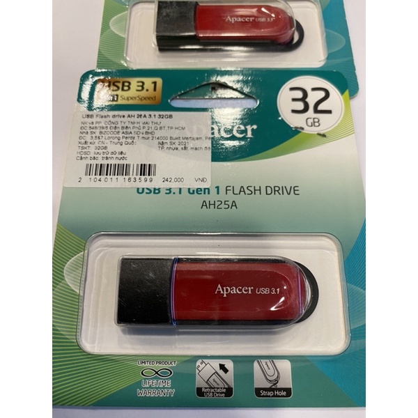 Máy tính & Laptop > Thiết Bị Lưu Trữ > USB & OTG || Usb Apacer 3.1 AH25A 32GB màu đỏCòn hàng