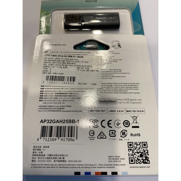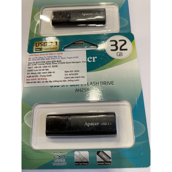 Máy tính & Laptop > Thiết Bị Lưu Trữ > USB & OTG || Usb Apacer 3.1 AH25B 32GB màu đen.Còn hàng